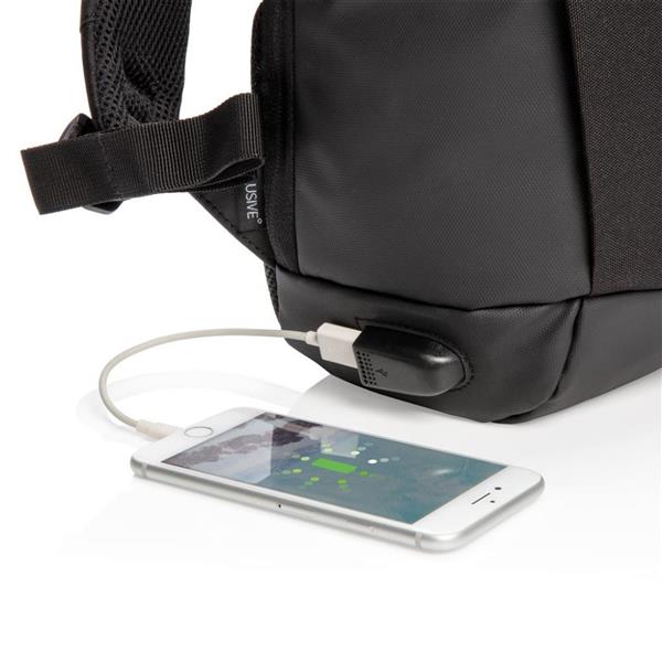 Plecak chroniący przed kieszonkowcami z przegrodą na laptopa 15,6″, miękka przegroda główna, kieszenie z ochroną RFID, gniazdo USB do ładowania telefonów (power-bank nie jest dołączony), nie zawiera PVC, wzór zastrzeżony®, ślad węglowy produktu: 4,57 kg CO2