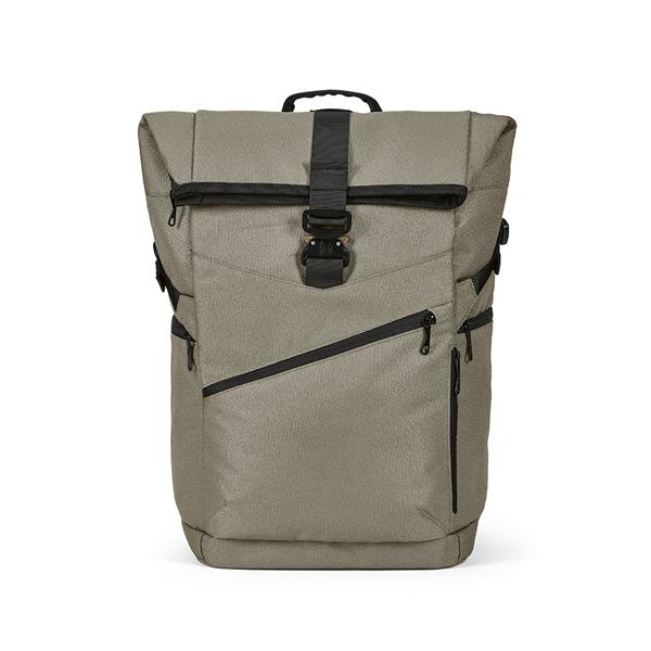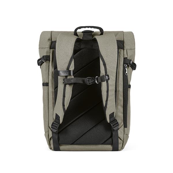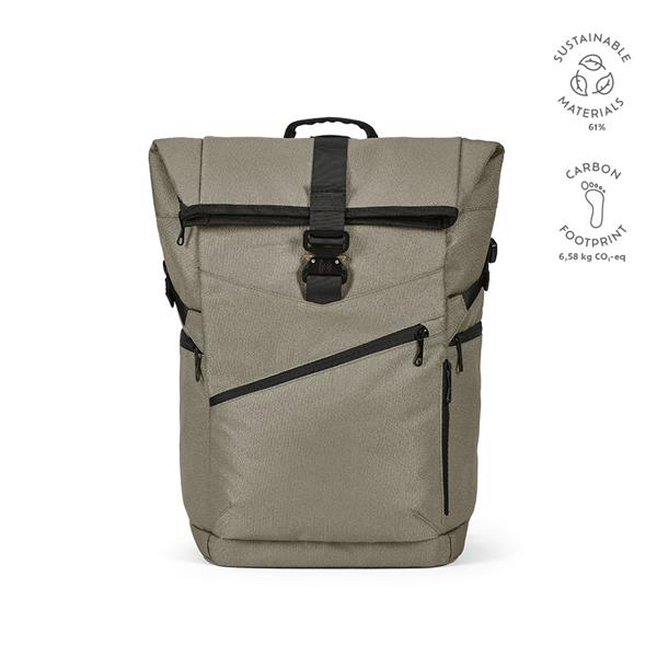 Skrupulatnie zaprojektowany plecak o pojemnosci 28 litrów jest wykonany z materialu rPET. Posiada wysokiej jakosci zapiecie na rolowana klamre. Na wyscielanych plecach znajduje sie pasek do wózka i ukryta kieszen. Wzmocniony uchwyt i paski. Pakowane indywidualnie w torby polietylenowe z recyklingu.