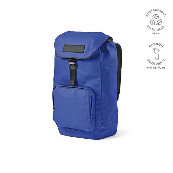 Ten 20-litrowy plecak jest wykonany z bawełnianego płótna z recyklingu o gramaturze 240 g/m2 z powłoką PU, dzięki czemu jest wodoodporny. Ma dużą pojemność, a klamra „G” sprawia, że zamknięcie jest wyjątkowe. Odpinana przednia naszywka umożliwia personalizację. W komplecie mniejsza przednia kieszeń zapinana na zamek.