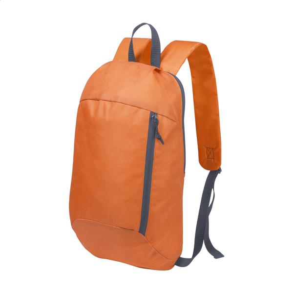 Tornister 600D poluester z regulacją szelek oraz zapinana na zamek przednia kieszeń.