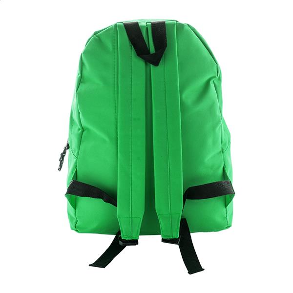 Plecak z zamykaną z przodu kieszenią na zamek, z miękkim tyłem oraz rączką. Materiał: poliester 600D.