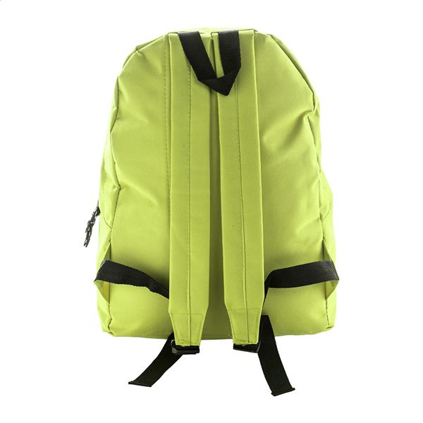 Plecak z zamykaną z przodu kieszenią na zamek, z miękkim tyłem oraz rączką. Materiał: poliester 600D.