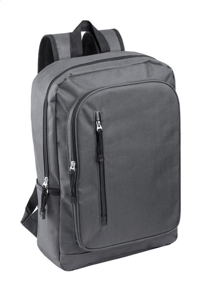 Plecak z wieloma zapinanymi kieszeniami, miejscem na laptop (15″) i regulowanymi paskami. Materiał 600D poliester.
