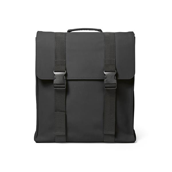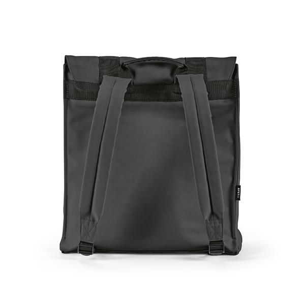 Nasz plecak zostal wykonany z poliuretanu pochodzacego z recyklingu, dzieki czemu bez trudu laczy w sobie praktycznosc i elegancje. Wzmocniony górny uchwyt zapewnia wygode, a sprzaczki umozliwiaja zamkniecie plecaka od góry. Wewnatrz znajduje sie wyscielana kieszen na laptopa (17″).