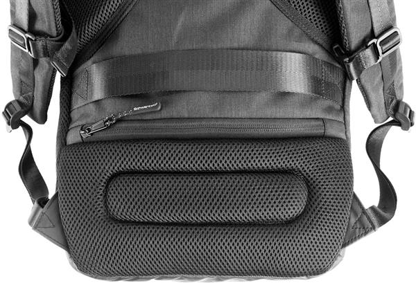 Plecak ze zwijanym zamknięciem, z watowanymi szelkami i plecami, wyposażony w dużą komorę główną z jedną oddzielną kieszenią i mniejszą kieszonką na akcesoria. Z przodu plecaka znajduje się mała kieszonka zamykana na zamek, po bokach dwie siatkowe kieszenie i jedna mała kieszonka z tyłu. Po zrolowaniu górnej części plecaka całość zamykamy dwoma paskami z plastikowymi klamerkami – tak zamknięty plecak będzie miał pojemność 25l. Plecak można również zamknąć bez rolowania, na zamek błyskawiczny – wtedy pomieści 32l.