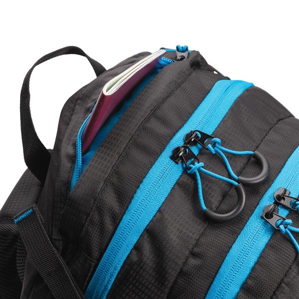 Plecak, pojemność 26l, wykonany z wytrzymałej tkaniny poliestrowej, wewnątrz kieszeń na butelkę lub laptopa do 15,4″, przestronna przegroda główna, zintegrowana osłona przeciwdeszczowa, nie zawiera PVC, ślad węglowy produktu: 5,64 kg CO2