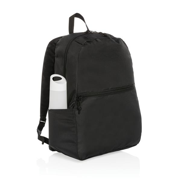 Plecak, przestronna przegroda główna, z przodu kieszeń zamykana na zamek, kieszeń na butelkę z boku, wykonany z 300D RPET, do którego produkcji zostało ponownie wykorzystanych 11,5 butelek PET (500 ml), dzięki zastosowaniu technologii śledzącej AWARE™ wykorzystane włókna są identyfikowalne z pochodzenia oraz wyprodukowane zostały zgodnie z ideą zrównoważonego rozwoju, 2% wpływów z każdego sprzedanego produktu z kolekcji Impact jest przekazywane na rzecz Water.org