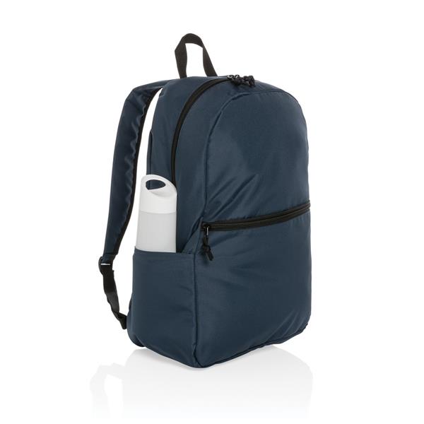 Plecak, przestronna przegroda główna, z przodu kieszeń zamykana na zamek, kieszeń na butelkę z boku, wykonany z 300D RPET, do którego produkcji zostało ponownie wykorzystanych 11,5 butelek PET (500 ml), dzięki zastosowaniu technologii śledzącej AWARE™ wykorzystane włókna są identyfikowalne z pochodzenia oraz wyprodukowane zostały zgodnie z ideą zrównoważonego rozwoju, 2% wpływów z każdego sprzedanego produktu z kolekcji Impact jest przekazywane na rzecz Water.org