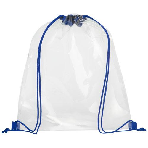 Transparentny plecak idealny dla fanów sportu, gdy chcą spakować się na stadion. Świetna także w szkole i pracy, która wymaga przechodzenia przez kontrolę bezpieczeństwa. Główna przegroda zamykana ściąganym sznurkiem. Nie zawiera akcesoriów.
