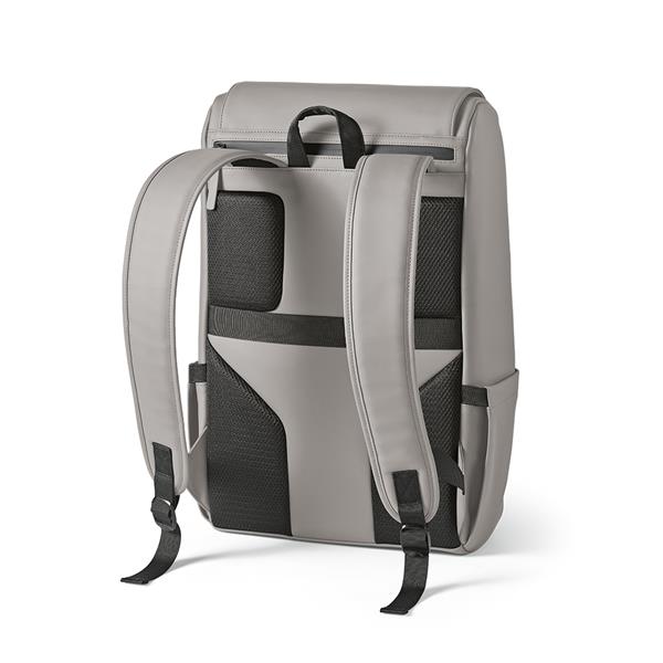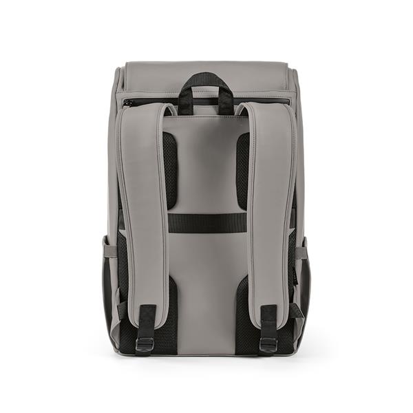 Ten 20-litrowy plecak jest wykonany z poliuretanu pochodzącego z recyklingu, dzięki czemu jest przestronny i trwały. Posiada górną komorę, przednią komorę i wyściełany rękaw na laptopa (15.6″) z tyłu: wszystkie dostępne osobno. Dwie boczne kieszenie i wyściełane paski zwiększają komfort noszenia.