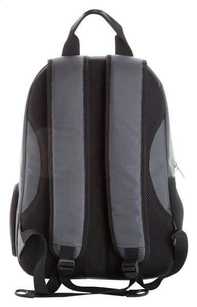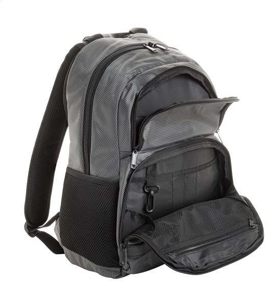 Plecak z wieloma zapinanymi przegrodami, wzmocnioną kieszenią na laptop, plecami i paskami. Materiał dwuwarstwowy poliester 420D. Produkt marki Andre Philippe.