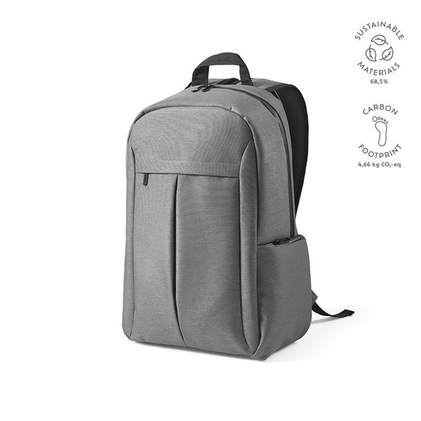 Odkryj funkcjonalny styl z naszym nylonowym plecakiem z recyklingu. Posiada wzmocniony górny uchwyt i wodoodporne zamki błyskawiczne. Elastyczne kieszenie boczne przeznaczone są do przenoszenia butelek, a boczna kieszeń zapinana jest na zamek błyskawiczny. W komplecie indywidualna bawełniana torba z recyklingu.
