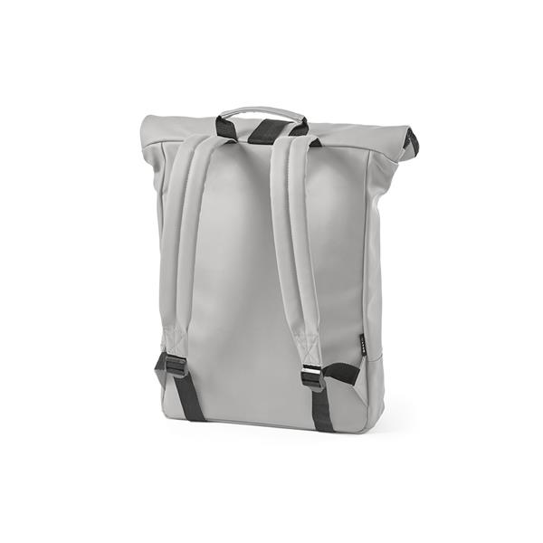 Zaprojektowany z myślą o wygodzie, nasz plecak łączy w sobie PU z recyklingu i funkcjonalność, zapakowany w indywidualną torbę z bawełny z recyklingu. Główna kieszeń z wyściełaną przegrodą na laptopa o przekątnej do 17″ oraz wyściełane plecy z paskiem do walizki sprawiają, że jest to idealne akcesorium na co dzień.