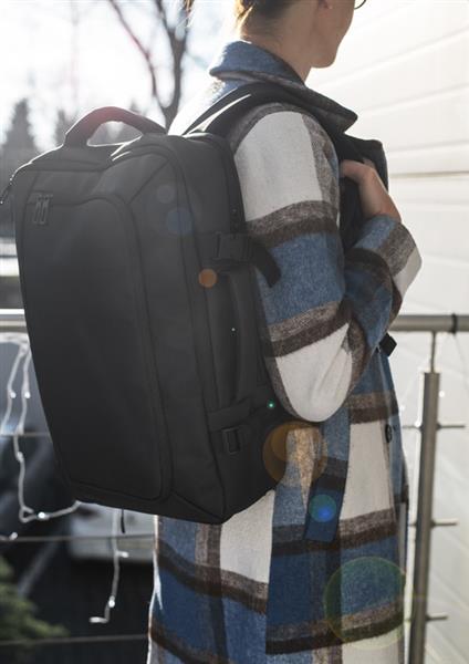 Plecak MODRO to model premium zaprojektowany dla osób, które cenią funkcjonalność, trwałość i nowoczesny wygląd. Wykonany z materiału z odwróconą powłoką PVC, zapewnia wysoką odporność na wodę, wilgoć i uszkodzenia mechaniczne. Wyposażony w przestronną komorę główną zamykaną na zamek błyskawiczny, bez trudu pomieści laptop o przekątnej do 19 cali. Liczne kieszenie i możliwość regulacji szerokości pozwalają utrzymać porządek i dopasować pojemność do potrzeb. Wzmocnione, wentylowane plecy i uchwyt do mocowania na walizce zwiększają wygodę w podróży. Plecak można nosić na plecach lub w dłoni jak torbę biznesową.