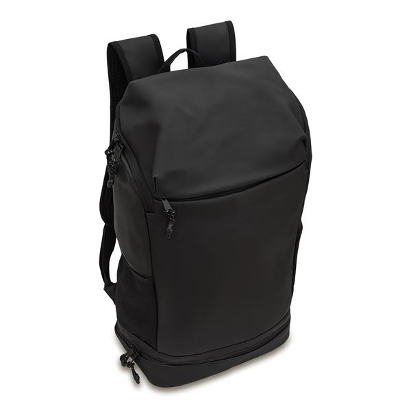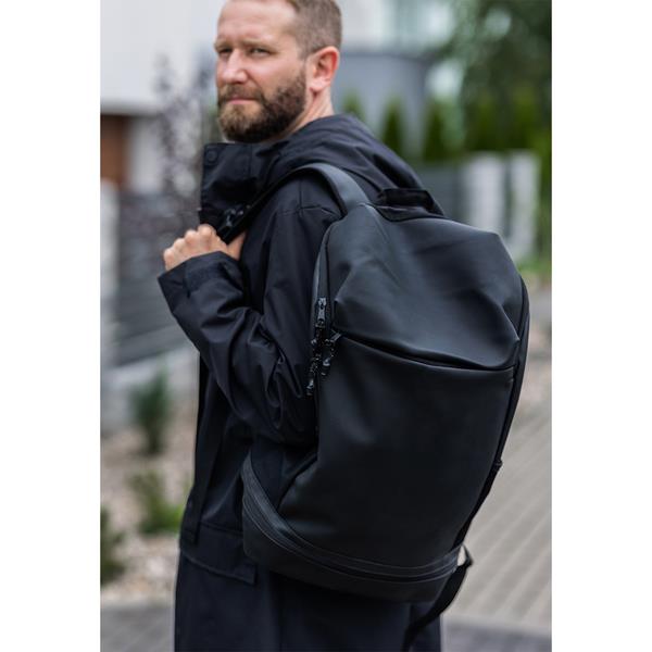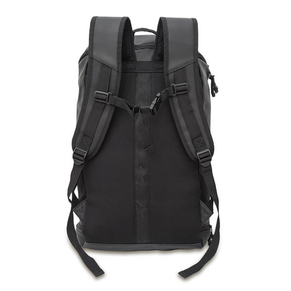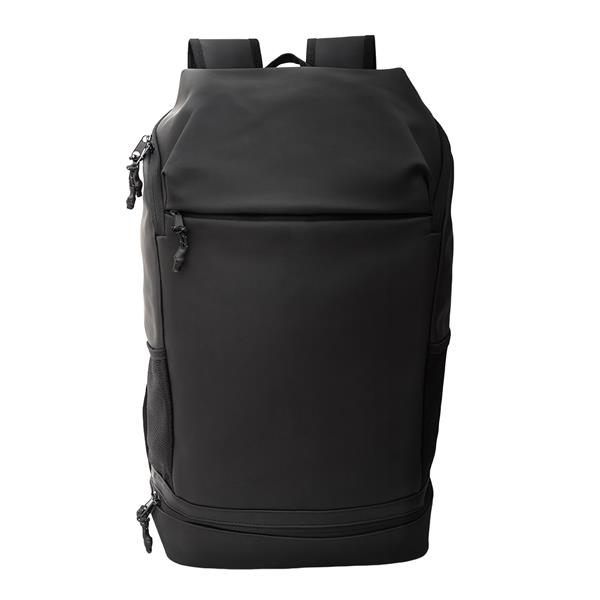 Przestronny plecak wykonany z wodoodpornego materiału PU. Posiada komorę główną z wewnętrzną kieszonką zapinaną na suwak. Z przodu znajduje się duża, zapinana kieszeń. Plecak posiada również bardzo pojemną, dolną kieszeń, 2 boczne kieszenie z siateczki. Wygodne, wykonane z miękkiej pianki plecy i wzmocnione, miękkie szelki z siateczką typu mesh. Stabilności dodaje też regulowany poziomy pas piersiowy z klamrą. Podszewka z poliestru. Wewnętrzne szwy wzmocnione poliestrową taśmą parcianą. Pojemność 30 litrów.