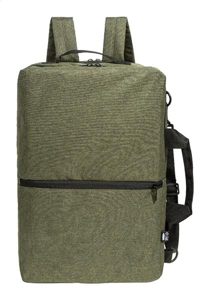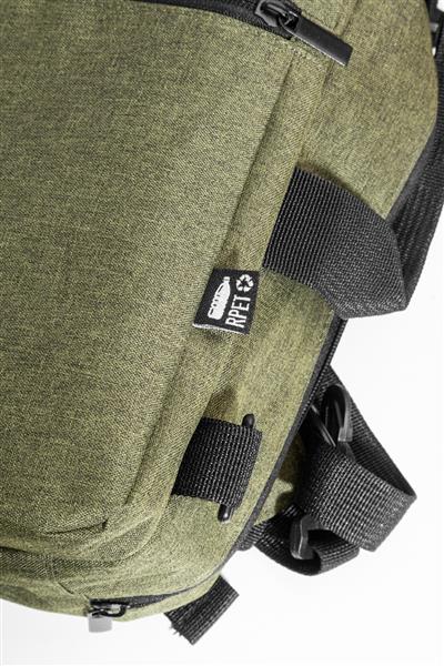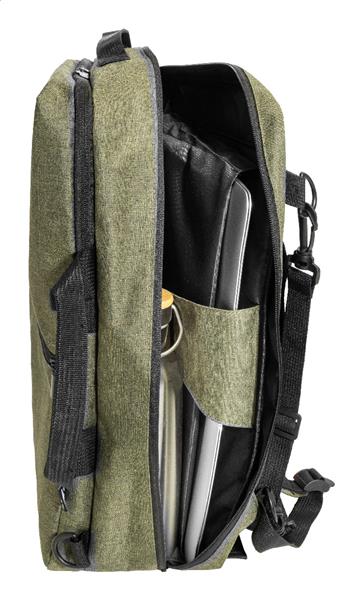 2 w 1 – plecak z RPET i torba na dokumenty z przegrodą na zamek błyskawiczny, 2 kieszeniami z przodu na zamek błyskawiczny i wyściełaną przegrodą na laptopa (15″). Z wyściełanymi plecami i paskami na ramię. W zestawie dodatkowy, odpinany pasek na ramię do użytku jako torba na dokumenty. Poliester 600D RPET, z charakterystyczną metką RPET.