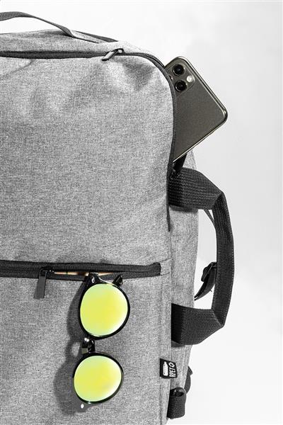 2 w 1 – plecak z RPET i torba na dokumenty z przegrodą na zamek błyskawiczny, 2 kieszeniami z przodu na zamek błyskawiczny i wyściełaną przegrodą na laptopa (15″). Z wyściełanymi plecami i paskami na ramię. W zestawie dodatkowy, odpinany pasek na ramię do użytku jako torba na dokumenty. Poliester 600D RPET, z charakterystyczną metką RPET.