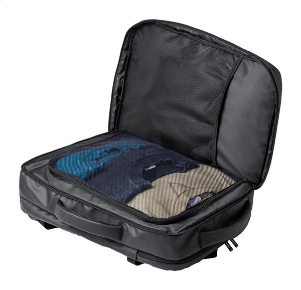 Dwufunkcyjny plecak i torba na dokumenty ze skóry PU z przegródkami zapinanymi na zamek, wyściełaną przegrodą na laptopa (17″) i siateczką, paskiem do wózka, wyściełanymi plecami i paskami na ramiona.