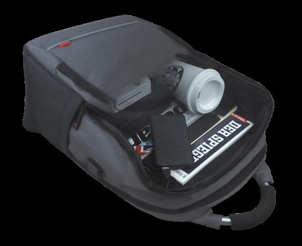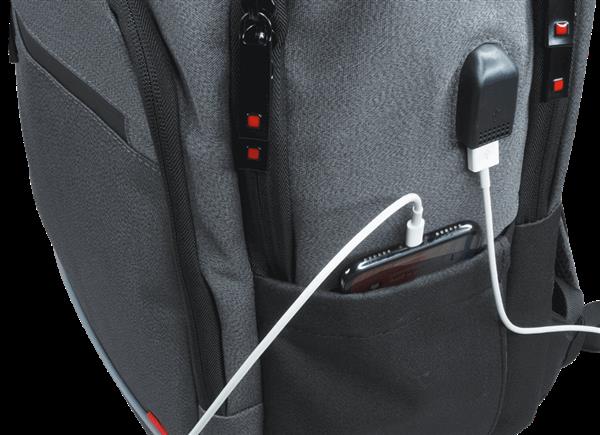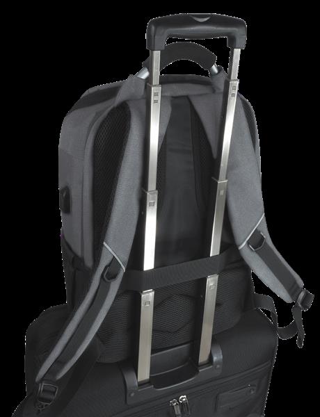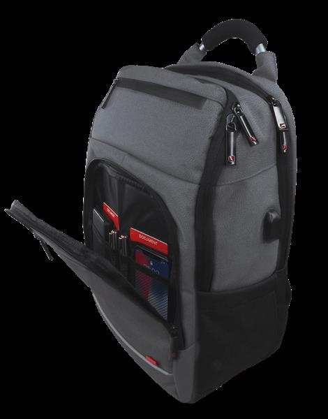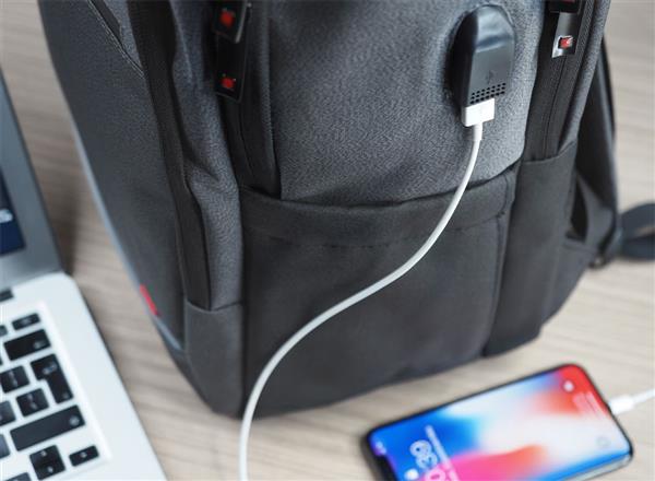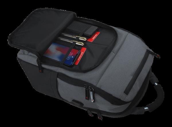 2 kieszenie na długopisy 4 kieszenie na dokumenty 6 kieszeni zapinanych na suwak Kieszeń antykradzieżowa Kieszeń na laptop 15,6″ Kieszeń z siatki Pasek mocujący do uchwytu walizki Rozszerzana kieszeń Zewnętrzny port ładowania USB