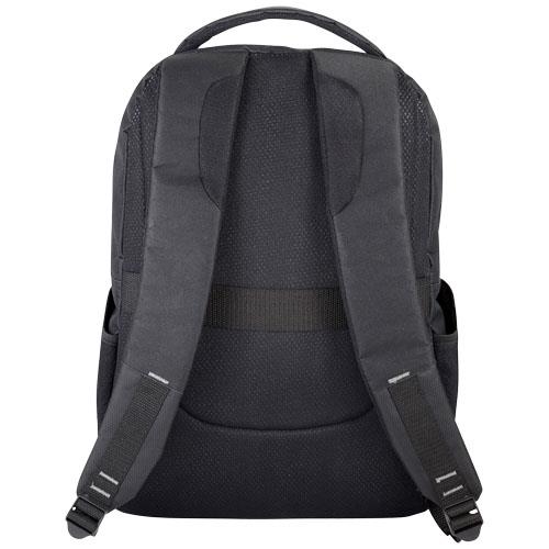 Plecak na laptop 15″ z kieszenią na przodzie zawierającą miejsce na klucze, oraz kieszonką z ochroną RFID na karty kredytowe. Główny przedział zapinany na zamek pomieści laptop 15″ i dodatkowo tablet w oddzielnej wyściełanej kieszeni. Zamek na froncie umożliwia szybki dostęp do przedniej kieszeni. Dwie dodatkowe kieszenie boczne. Wyściełane, regulowane szelki dają komfort użytkowania i możliwość zamocowania na nich innych przedmiotów. Posiada rączkę do przenoszenia oraz uchwyt umożliwiający założenie plecaka na walizkę. Ze względu na rodzaj barwników tkanin, splotów i nadruków mogą występować niewielkie różnice w kolorze rzeczywistego produktu.