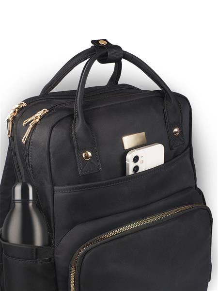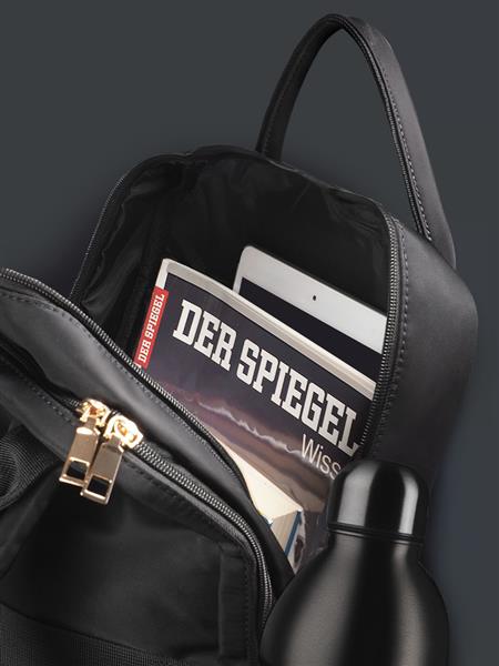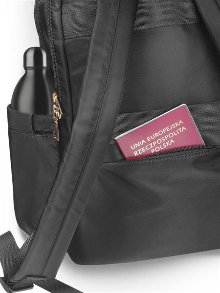 2 kieszenie na długopisy 2 kieszenie zewnętrzne 2 uchwyty łączone paskiem na zatrzask 6 kieszeni zapinanych na suwak Kieszeń na laptop 14″ Kieszeń zapinana na magnes Pasek mocujący do uchwytu walizki Posiada metalową blaszkę na logo Sekretna kieszeń na dokumenty