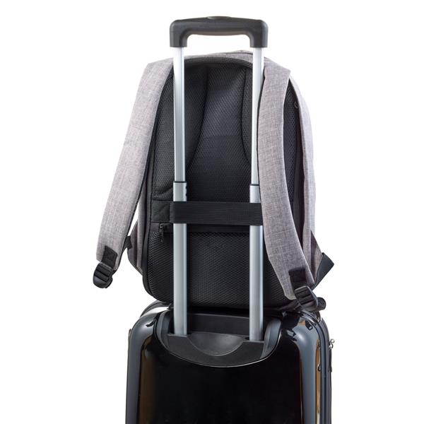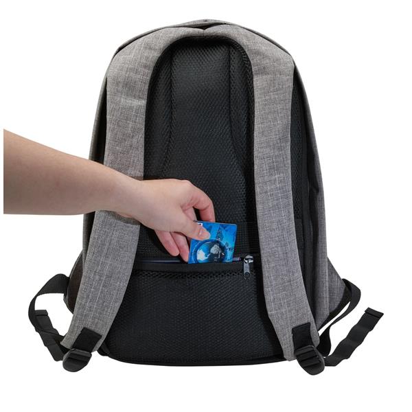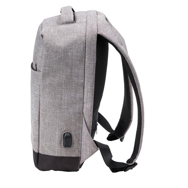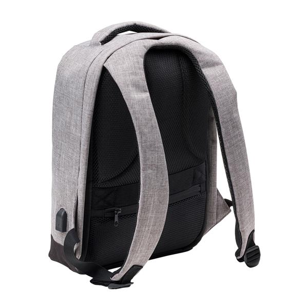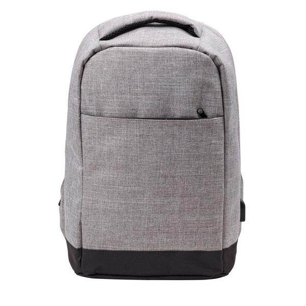 Plecak chroniący przed kieszonkowcami, przegroda na laptopa 13″, różne przegrody w środku w tym na zamek błyskawiczny, zewnętrzna kieszeń tylna na zamek, port USB z kablem do ładowania (power-bank nie jest dołączony)