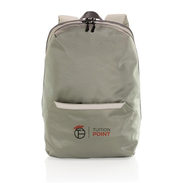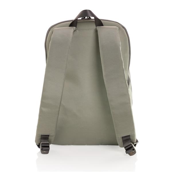 Plecak na laptopa 15,6″, minimalistyczny design, zewnętrzna i wewnętrzna część wykonana z poliestru z recyklingu do produkcji którego zostało ponownie wykorzystanych 32,7 butelek PET (500 ml), dzięki zastosowaniu technologii AWARE™ wykorzystane materiały są identyfikowalne z pochodzenia, 2% wpływów z każdego sprzedanego produktu z kolekcji Impact jest przekazywane na rzecz Water.org, nie zawiera PVC