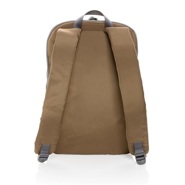 Plecak na laptopa 15,6″, minimalistyczny design, zewnętrzna i wewnętrzna część wykonana z poliestru z recyklingu do produkcji którego zostało ponownie wykorzystanych 32,7 butelek PET (500 ml), dzięki zastosowaniu technologii AWARE™ wykorzystane materiały są identyfikowalne z pochodzenia, 2% wpływów z każdego sprzedanego produktu z kolekcji Impact jest przekazywane na rzecz Water.org, nie zawiera PVC