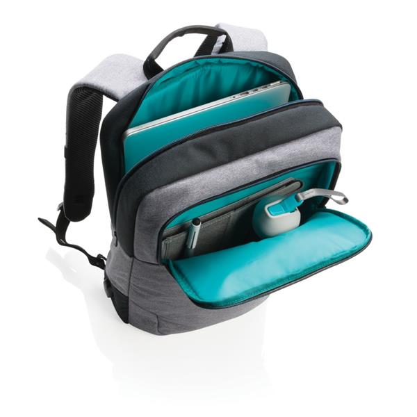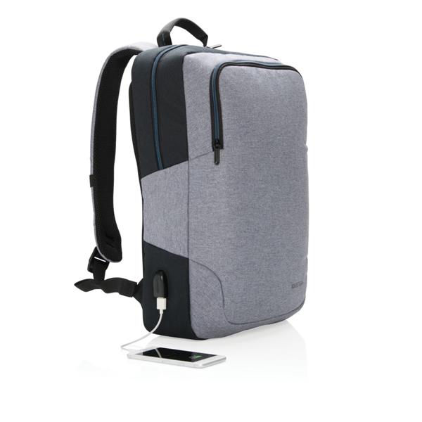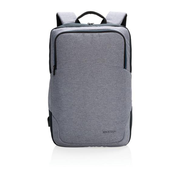 Plecak na laptopa 15″, duża przegroda główna na laptopa, kieszeń przednia, na pasku na ramię przyssawki oraz pasek do zamocowania telefonu, zintegrowany portu USB do ładowania (power-bank nie jest dołączony), wzór zastrzeżony®, ślad węglowy produktu: 5,33 kg CO2
