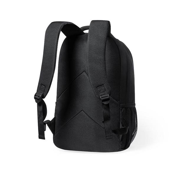 Plecak wykonany z RPET, z przegrodą na laptopa 15″ i przegrodą na tablet 12″, miękki tył i regulowane paski na ramię, 2 boczne kieszenie siateczkowe