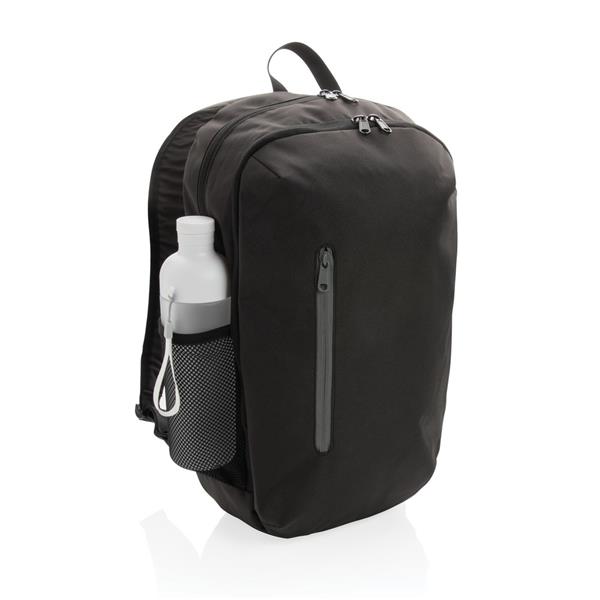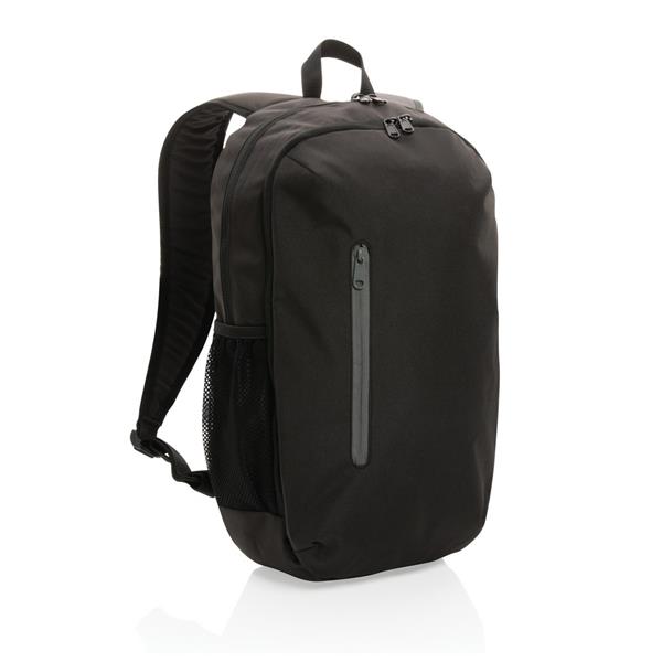 Plecak na laptopa 15″, przestronna przegroda główna z 2 otwartymi kieszeniami wewnątrz, 2 kieszenie na zewnątrz, materiał zewnętrzy oraz podszewka wykonane z materiałów pochodzących z recyklingu, dzięki czemu każdy plecak został wykonany z 15,39 ponownie przetworzonych butelek PET 0,5l, dzięki zastosowaniu technologii śledzącej AWARE™ wykorzystane włókna są identyfikowalne z pochodzenia, 2% wpływów z każdego sprzedanego produktu z kolekcji Impact jest przekazywane na rzecz Water.org