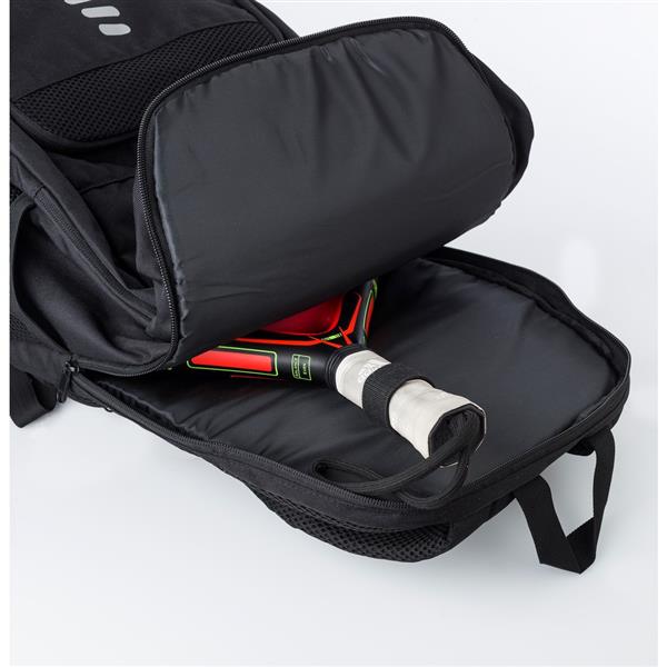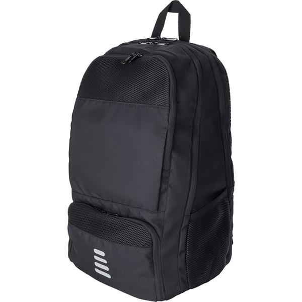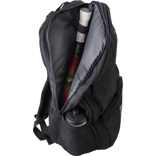 Plecak na laptopa 15″, wykonany z RPET, nieprzemakalny, przegroda na rakiety tenisowe, kieszeń chroniąca przed kieszonkowcami, kieszeń na buty, kieszenie boczne, regulowane paski na ramię
