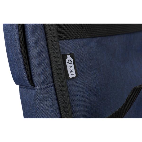 Plecak na laptopa 15″ RPET, duża komora zapinaną na zamek z wieloma kieszeniami wewnętrznymi, kieszeń na laptopa 15 cali z zapięciem na rzep, pojemność 12L, konstrukcja obejmuje wzmocnione, wentylowane plecy, regulowane szelki, boczny uchwyt do przenoszenia oraz pasek do mocowania na walizce, maksymalne obciążenie: 10 kg , produkt wykonany z poliestru RPET 300D z podszewką z RPET 210D