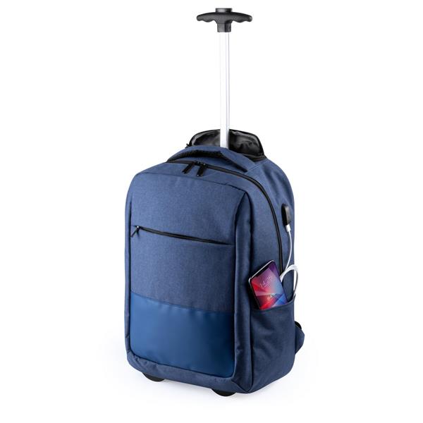 Plecak na kółkach, miękka przegroda na laptopa 15″ i tablet 10″, gniazdo USB do ładowania telefonów (power-bank nie dołączony), miękki tył i paski na ramię