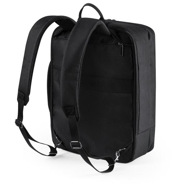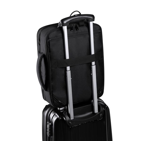 Plecak na laptopa do 15″, główna przegroda na zamek błyskawiczny, przednia kieszeń, miękka przegroda na laptopa, pasek do zamocowania na torbie podróżnej, miękki tył i paski na ramię