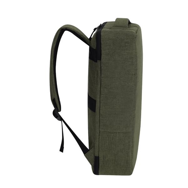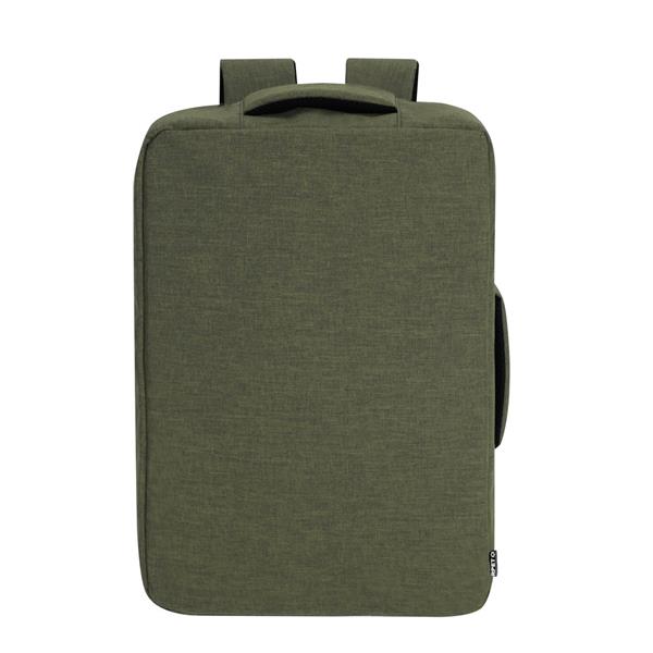 Plecak na laptopa 15″, posiada miękką przegrodę na laptopa i przegrodę na tablet 10″, miękki tył zwiększający komfort użytkowania i regulowane paski na ramię umożliwiające dopasowanie ich długości do własnych preferencji, produkt wykonany z poliestru 300D RPET