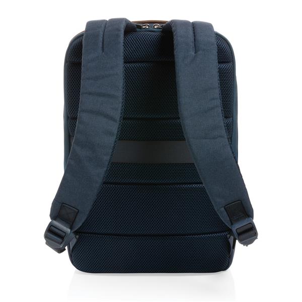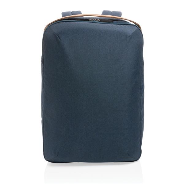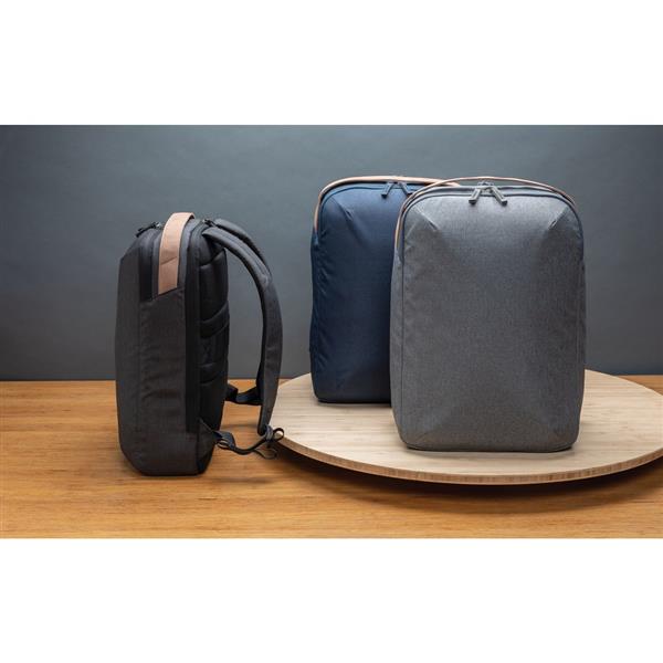 Plecak na laptopa 15,6″, wewnątrz głównej przegrody 2 mniejsze kieszenie, miękkie szelki i tył, uchwyt z PU, materiał zewnętrzy oraz podszewka wykonane z materiałów pochodzących z recyklingu, dzięki czemu każdy plecak został wykonany z 9,01 butelek PET 0,5l, dzięki zastosowaniu technologii śledzącej AWARE™ wykorzystane włókna są identyfikowalne z pochodzenia, 2% wpływów z każdego sprzedanego produktu z kolekcji Impact jest przekazywane na rzecz Water.org