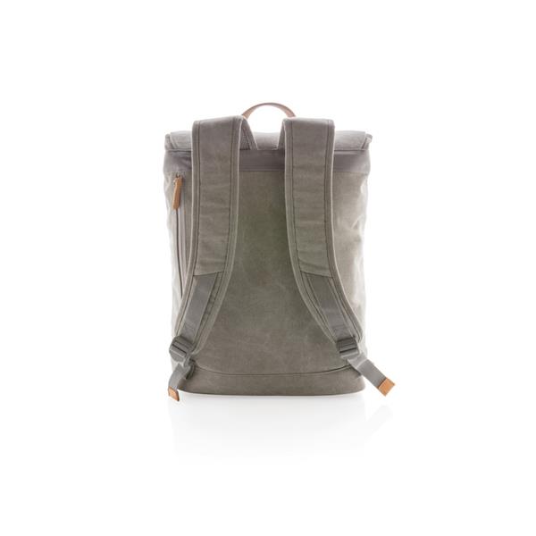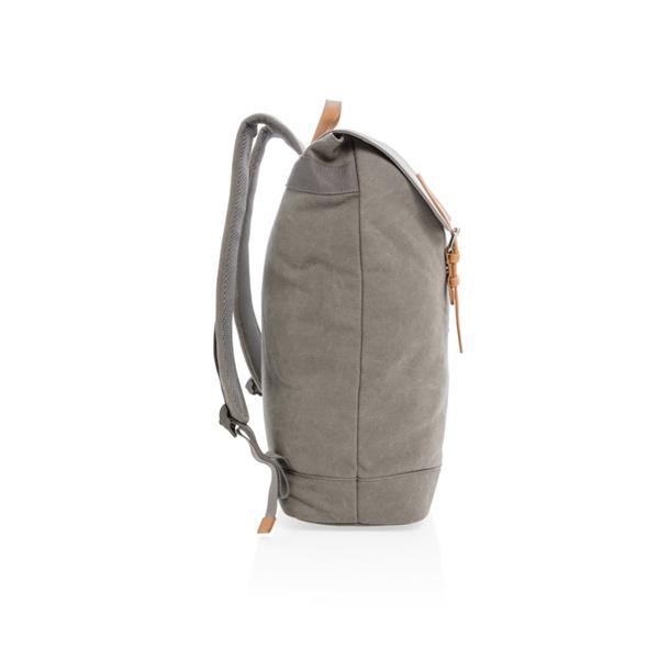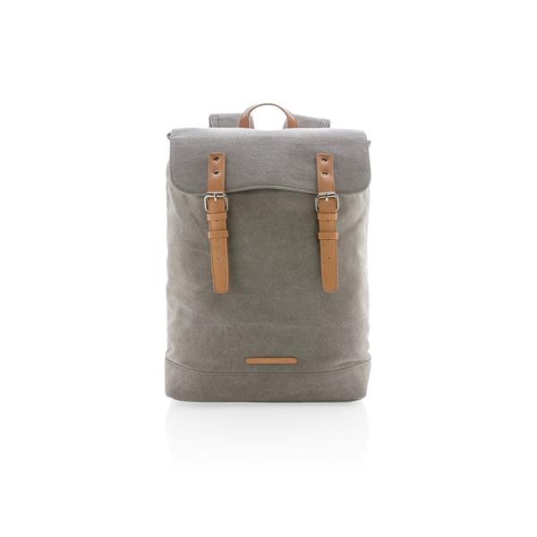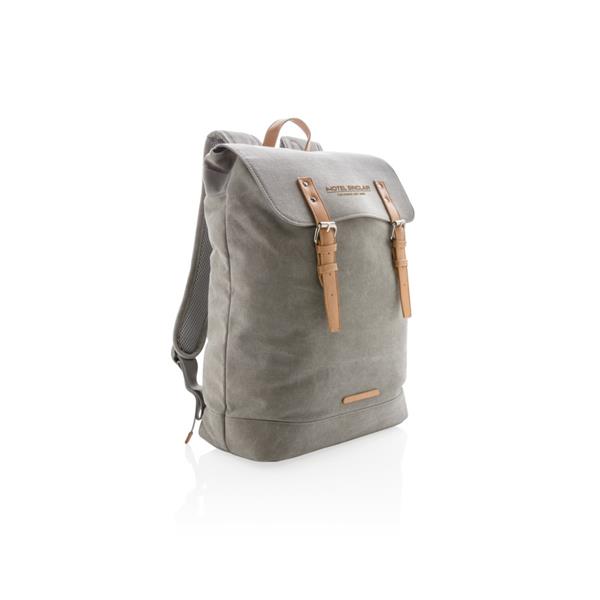 Plecak z miękką przegrodą na laptopa 15,6″, wykonany z wytrzymałego płótna, pokrywa górna zamykana na paski z magnetycznymi klamrami, nie zawiera PVC, ślad węglowy produktu: 8,47 kg CO2