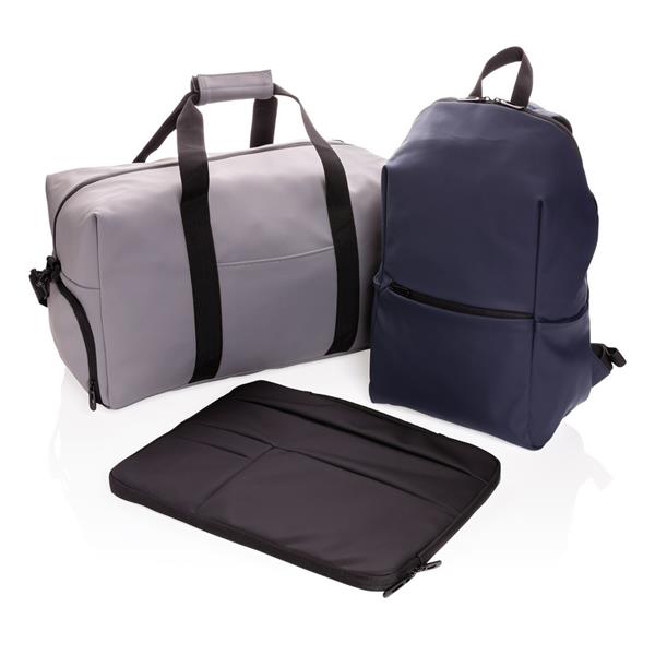 Plecak na laptopa 15,6″, przestronna przegroda główna, wewnątrz 2 kieszenie i 2 pętle na przybory do pisania, miękki tył, regulowane paski na ramiona, wnętrze z poliestru 210D, na zewnątrz PU, nie zawiera PVC, ślad węglowy produktu: 3,03 kg CO2