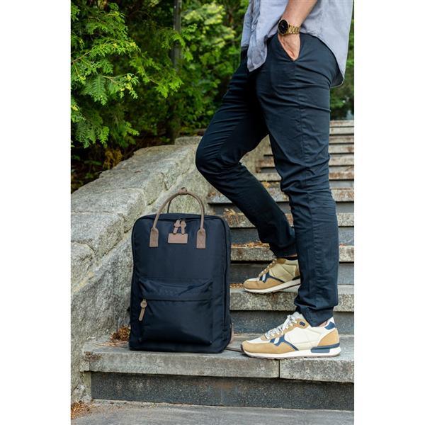 Plecak B’RIGHT na laptopa 15,6″, posiada 2 przegrody główne na zamek błyskawiczny, przednia przegroda główna z różnymi kieszonkami w środku w tym 1 boczną, tylna przegroda główna z kieszenią na laptopa, wnętrze przegród głównych wykończone podszewką w kolorze uchwytów, 1 kieszeń przednia na zamek błyskawiczny, 2 uchwyty z możliwością złączenia paskiem na napę, miękki tył zwiększający komfort użytkowania i regulowane paski na ramię umożliwiające dopasowanie ich długości do własnych preferencji, produkt wykonany z RPET, zgodny z certyfikatem GRS (Global RecycIed Standard)