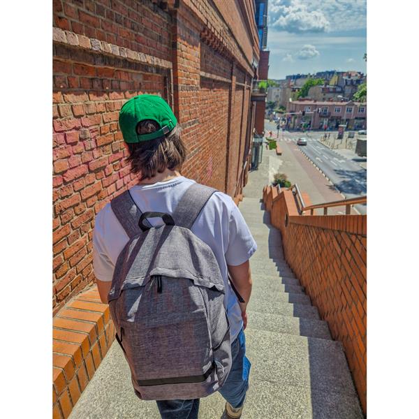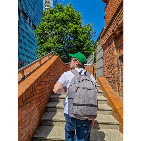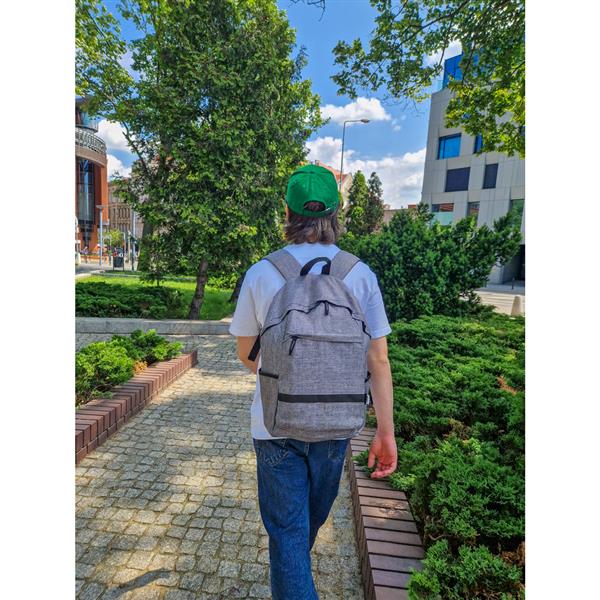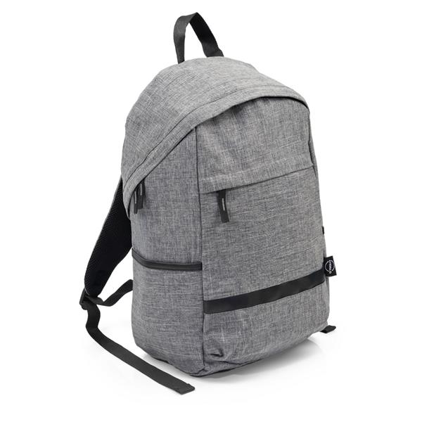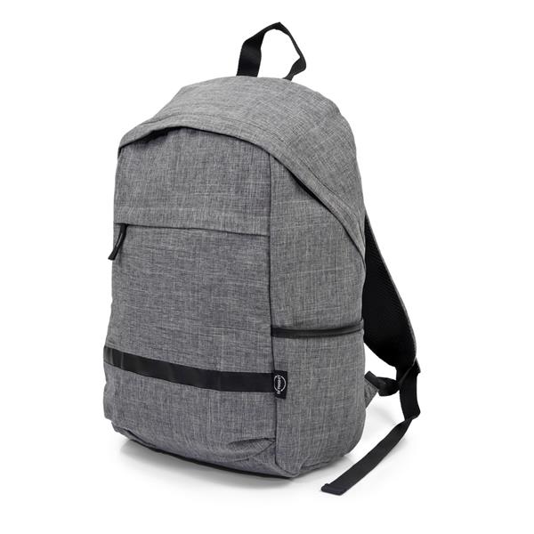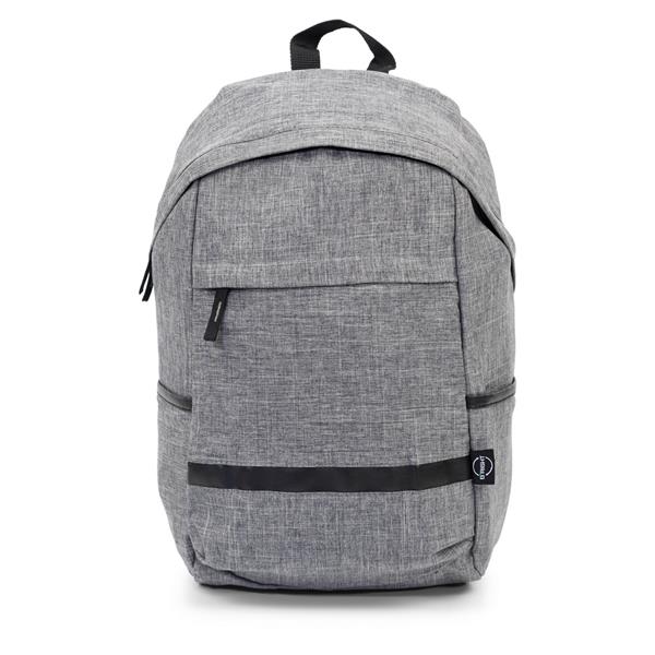 Plecak na laptopa 15,6″ B’RIGHT, wykonany z RPET, zgodny z certyfikatem GRS (Global RecycIed Standard), przegroda główna i kieszeń przednia na zamek błyskawiczny, miękka przegroda na laptopa, 2 kieszenie boczne, miękki tył i regulowane paski na ramię