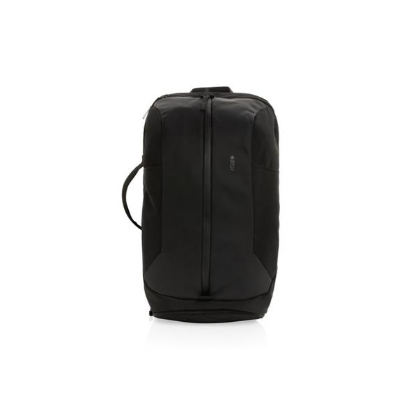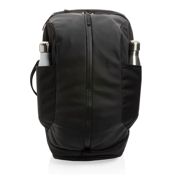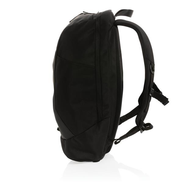 Plecak na laptopa 15,6″, specjalna hybrydowa konstrukcja sprawia, że plecak jest idealny do biura i na siłownię, posiada oddzielne przegrody na sprzęt sportowy i biurowy, wykonany z materiałów pochodzących z recyklingu do produkcji których zostało ponownie wykorzystanych 31,1 butelek PET o pojemności 0,5 l, dzięki zastosowaniu technologii śledzącej AWARE™ wykorzystane włókna są identyfikowalne z pochodzenia, 2% wpływów z każdego sprzedanego produktu jest przekazywane na rzecz Water.org, nie zawiera PVC