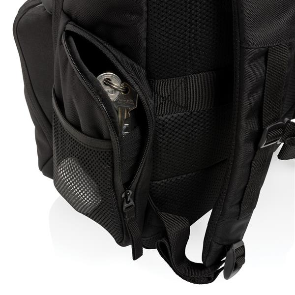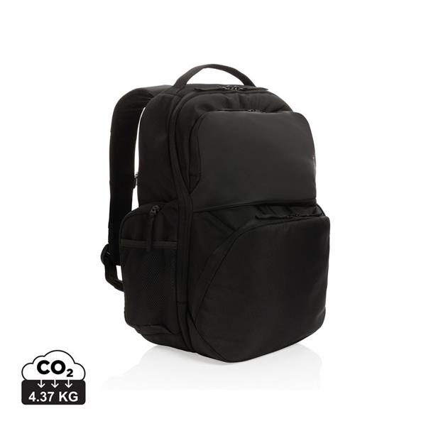 Plecak na laptopa 15,6″, 2 przestronne pojemne kieszenie z przodu oraz przegroda główna, 2 kieszenie po bokach, wykonany z 32,8 poddanych recyklingowi butelek PET (500 ml), dzięki zastosowaniu technologii AWARE™ wykorzystane materiały są identyfikowalne z pochodzenia, 2% wpływów z każdego sprzedanego produktu z kolekcji Impact jest przekazywane na rzecz Water.org, nie zawiera PVC