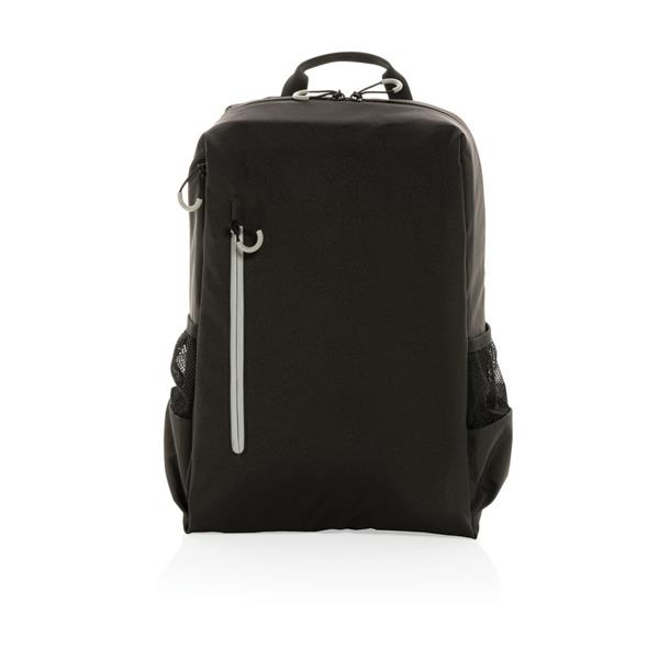 Plecak na laptopa 15,6″, wykonany z RPET, przestronna przegroda główna z wyściełaną przegrodą na laptopa i mniejszymi kieszeniami wewnątrz, kieszeń z ochroną RFID, zintegrowany port USB do ładowania (power-bank nie jest dołączony), posiada wbudowany znacznik AWARE™, który potwierdza wykorzystanie materiałów z recyklingu, dzięki wykorzystaniu materiałów z recyklingu przy produkcji tego plecaka udało się ponownie wykorzystać […]
