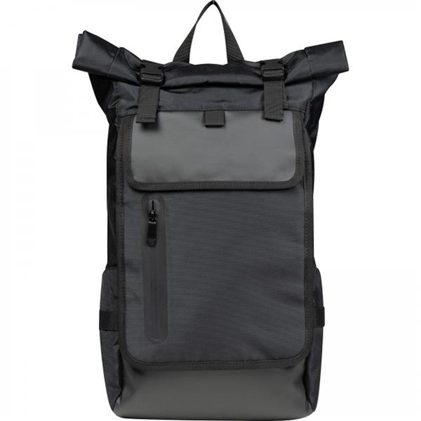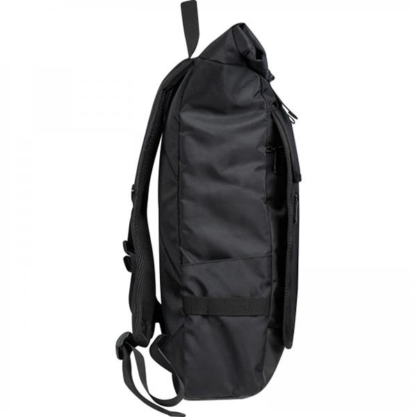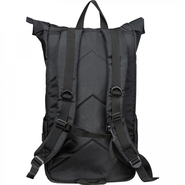 Plecak na laptopa wykonany z poliestru, z wyściełaną przegródką na laptopa o wymiarach 15,6` i wieloma dodatkowymi przegródkami. Plecak ma praktyczne rolowane zamknięcie, dzięki któremu można manipulować jego pojemnością.