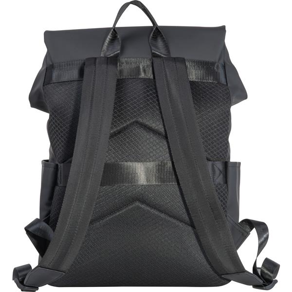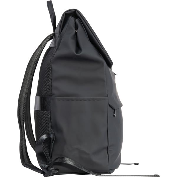 Wysokiej jakości plecak na laptopa wykonany z miękkiego w dotyku poliuretanu i skóry ekologicznej. Plecak oferuje pojemną komorę główną i przegrodę na laptopa, dwie kieszenie boczne, kieszeń przednią z ukrytym zamkiem błyskawicznym oraz pasek do noszenia na walizce. Klapa zamykana jest na magnes.