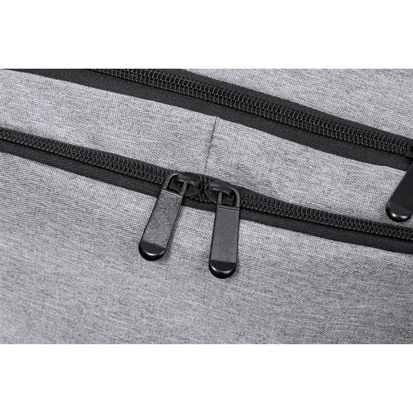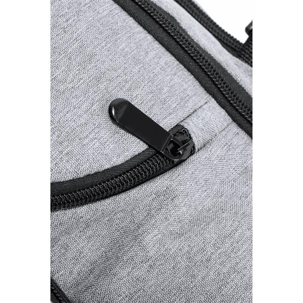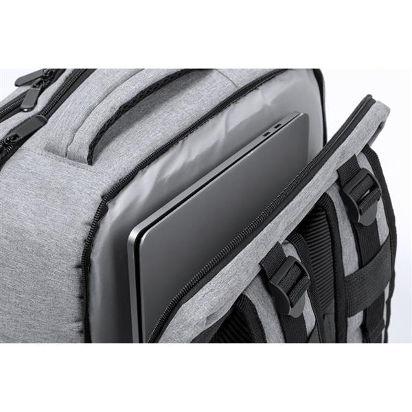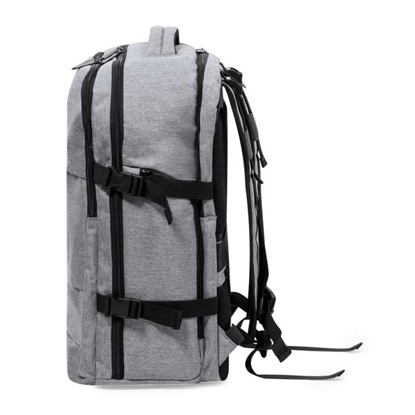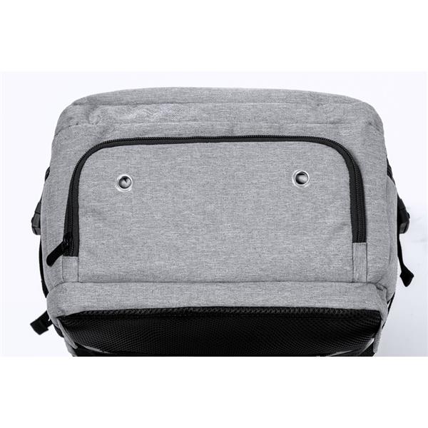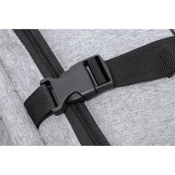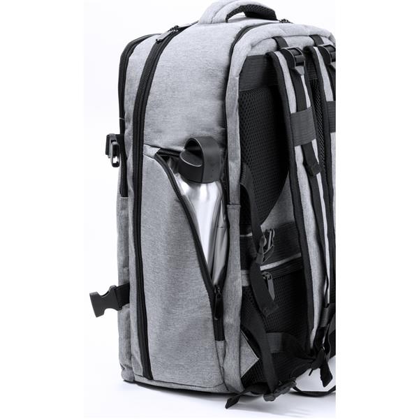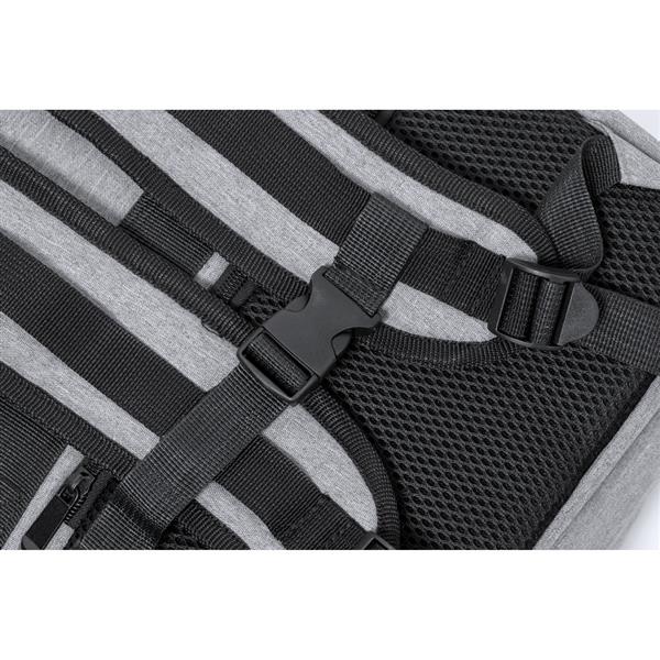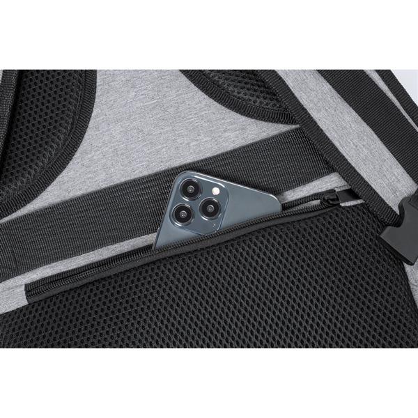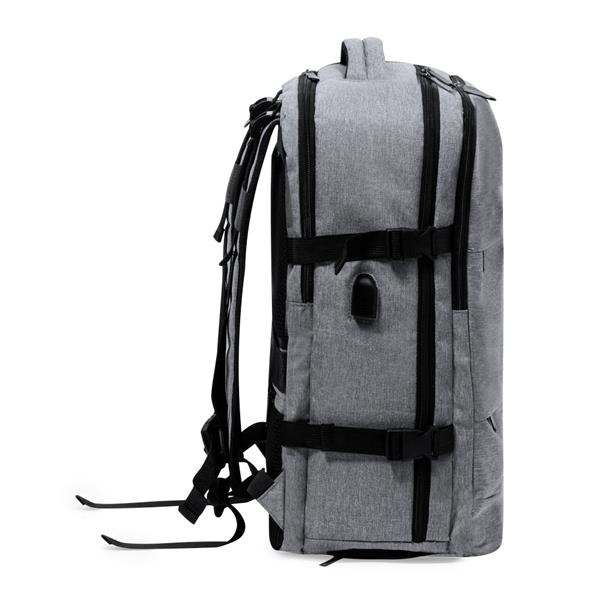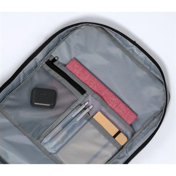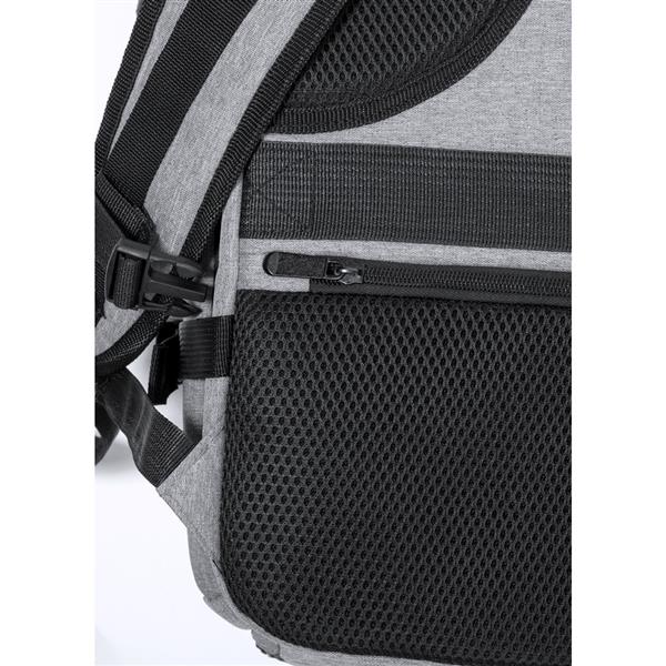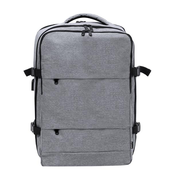 Plecak na laptopa 17″, wykonany z RPET, kieszeń na buty, miękka przegroda na laptopa, gniazdo USB do ładowania telefonów (power-bank nie dołączony), miękki tył i regulowane paski na ramię