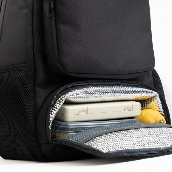 Plecak na laptopa z termiczną torbą, to właściwy wybór dla wszystkich, którzy codziennie zabierają ze sobą lunch/przekąskę do biura. Dzięki swojej wszechstronności, ten plecak będzie towarzyszył ci w podróżach służbowych, niezależnie od wybranego środka transportu, ponieważ posiada wodoodporne zamki błyskawiczne.