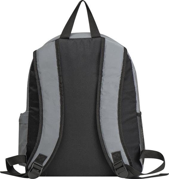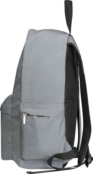 Plecak wykonany w całości z wysoce odblaskowego materiału 190T i poliestru 600D. Posiada specjalną kieszeń na laptopa, siateczkową kieszeń boczną oraz małą kieszonkę zamykaną na zamek.
