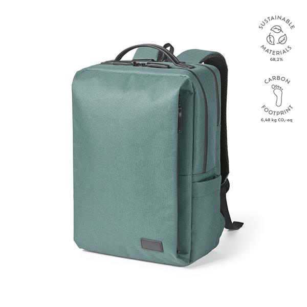 Nasz plecak jest starannie wykonany z poliestru 600D pochodzącego z recyklingu. Posiada 2 przestronne kieszenie, wodoodporne zamki błyskawiczne, pasek do walizki i wyściełaną przegrodę na laptopa 17″. W komplecie indywidualna torba z bawełny pochodzącej z recyklingu.